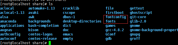 这时在/usr/shared目录就可以看到fonts和fontconfig目录了(之前是没有的):